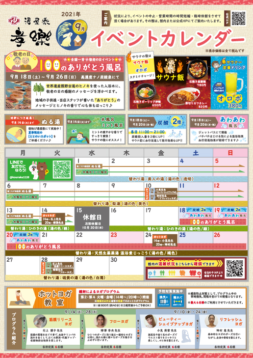 埼玉県からの要請に従い、9月12日(日)までの間、20時までの時短営業となっております。 また、時短期間中のホットヨガ教室は休止とさせていただきます。 今後のスケジュールつきましては、決まり次第公式HP・館内にてご案内させて頂きます。