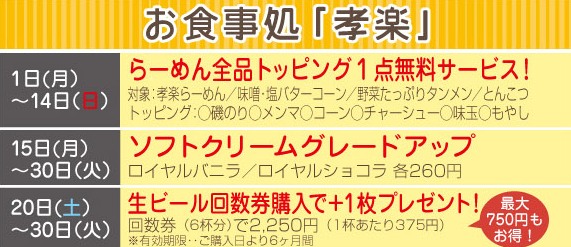 お食事処「孝楽」 6月イベント