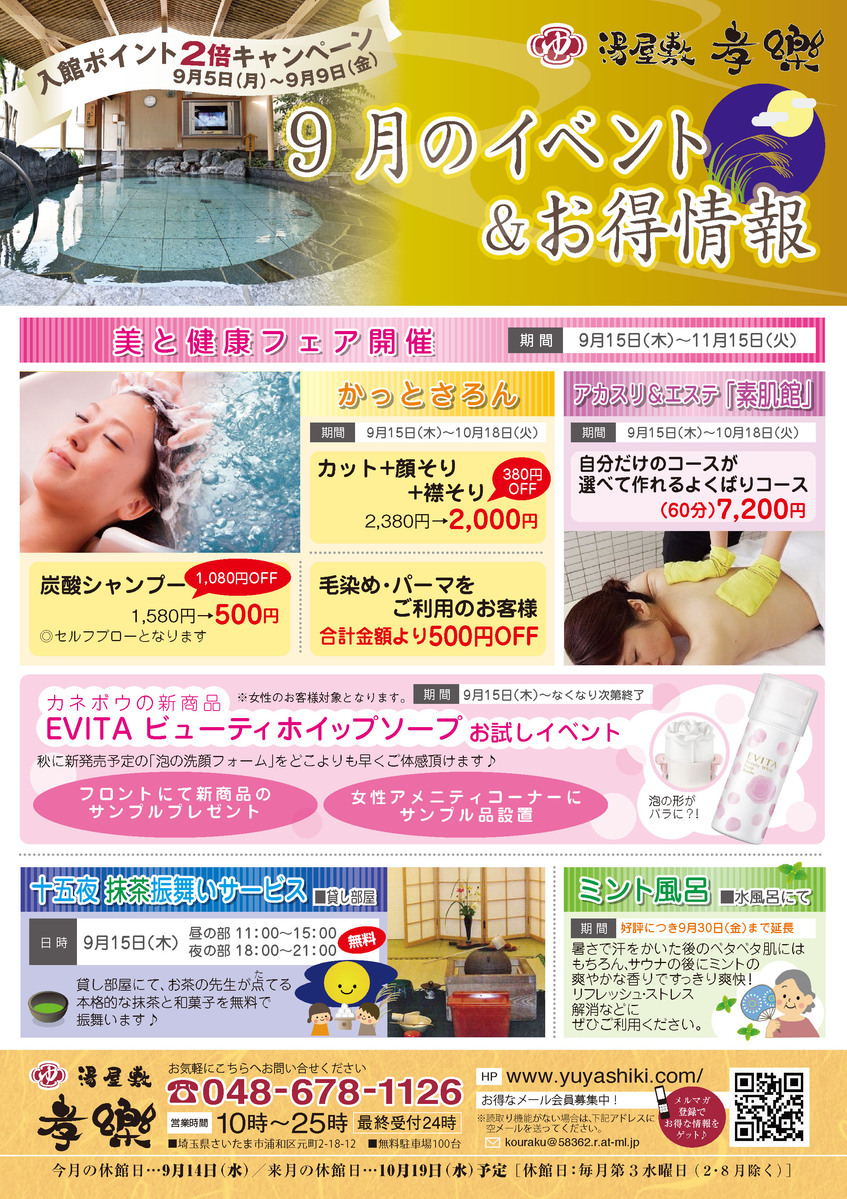 こちらのイベントチラシは、当館入口受付、岩盤浴受付、癒し処・癒しさろんにて配布しております。