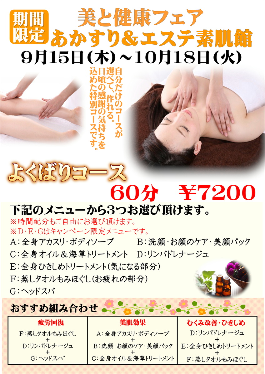 【美と健康フェア】 アカスリ&エステ「素肌館」